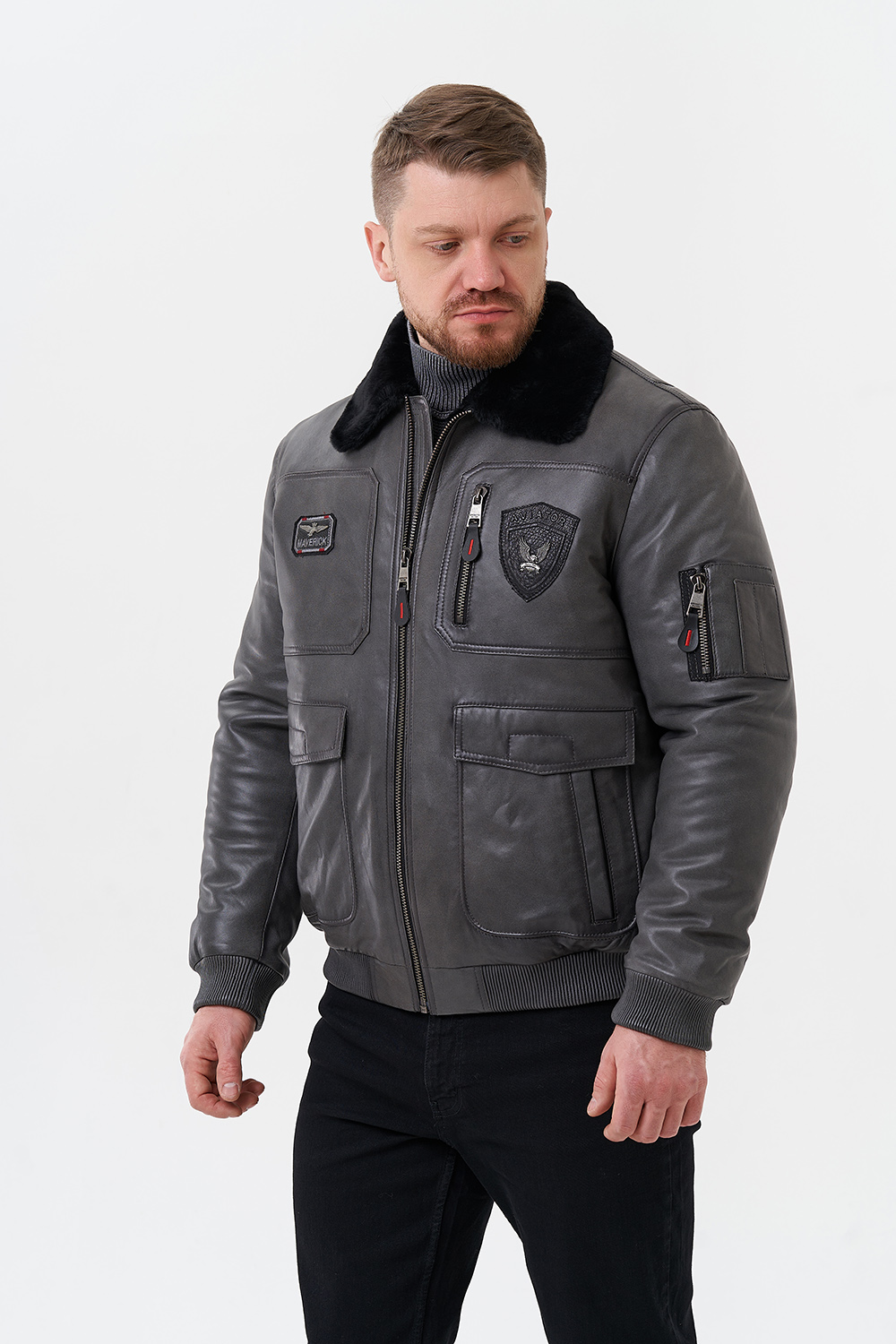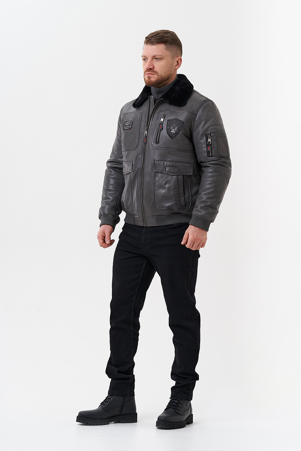 Тип ворота - отложной, отделка овчина черная
