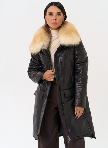 Пуховик из натуральной кожи