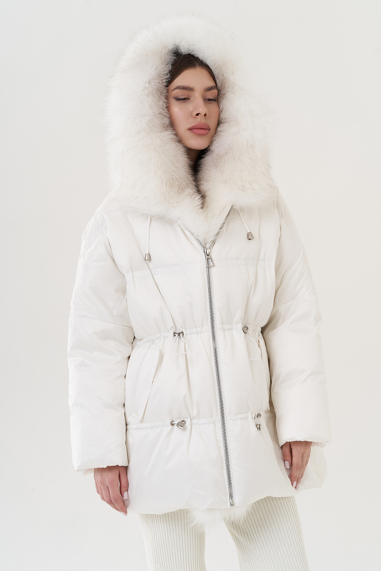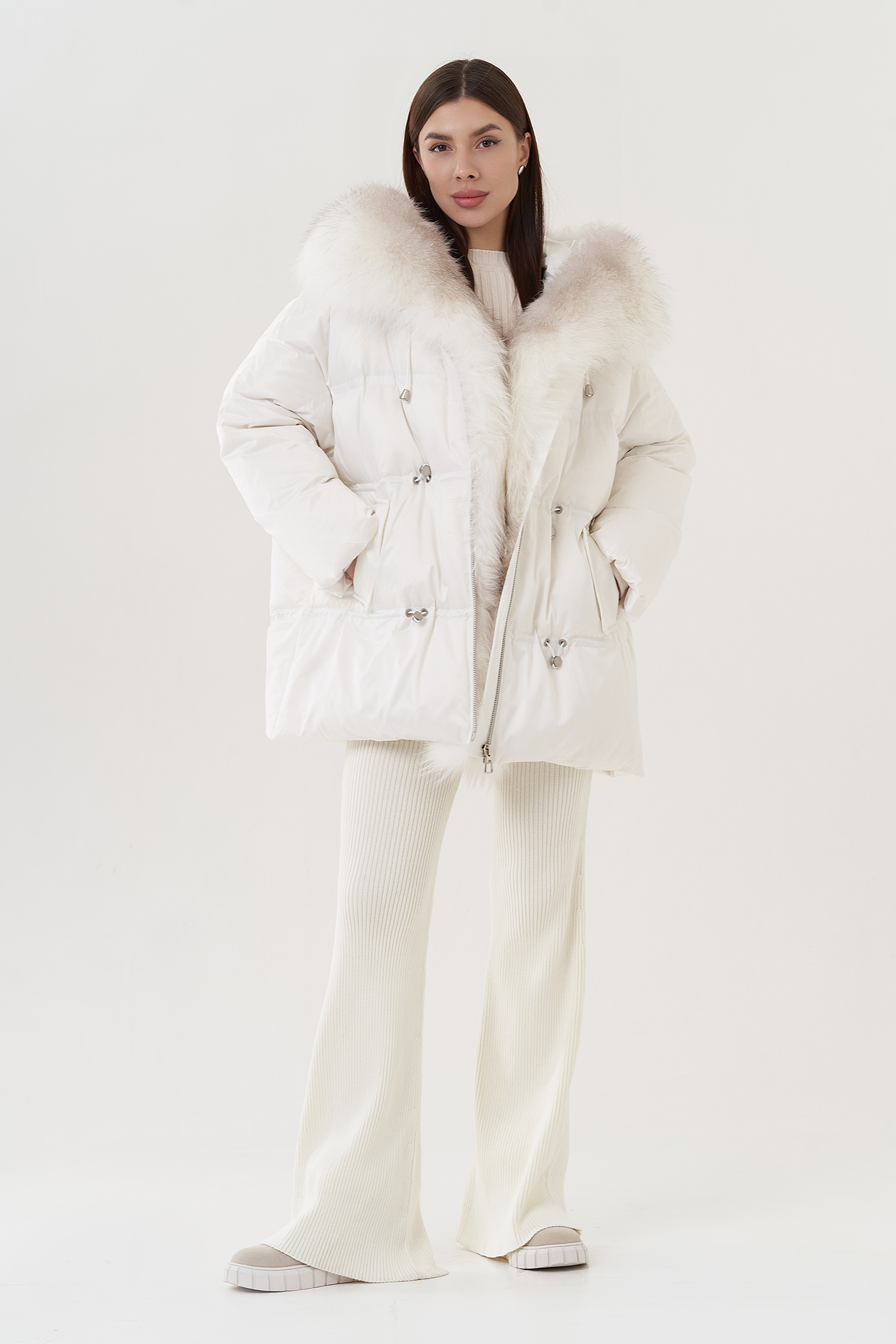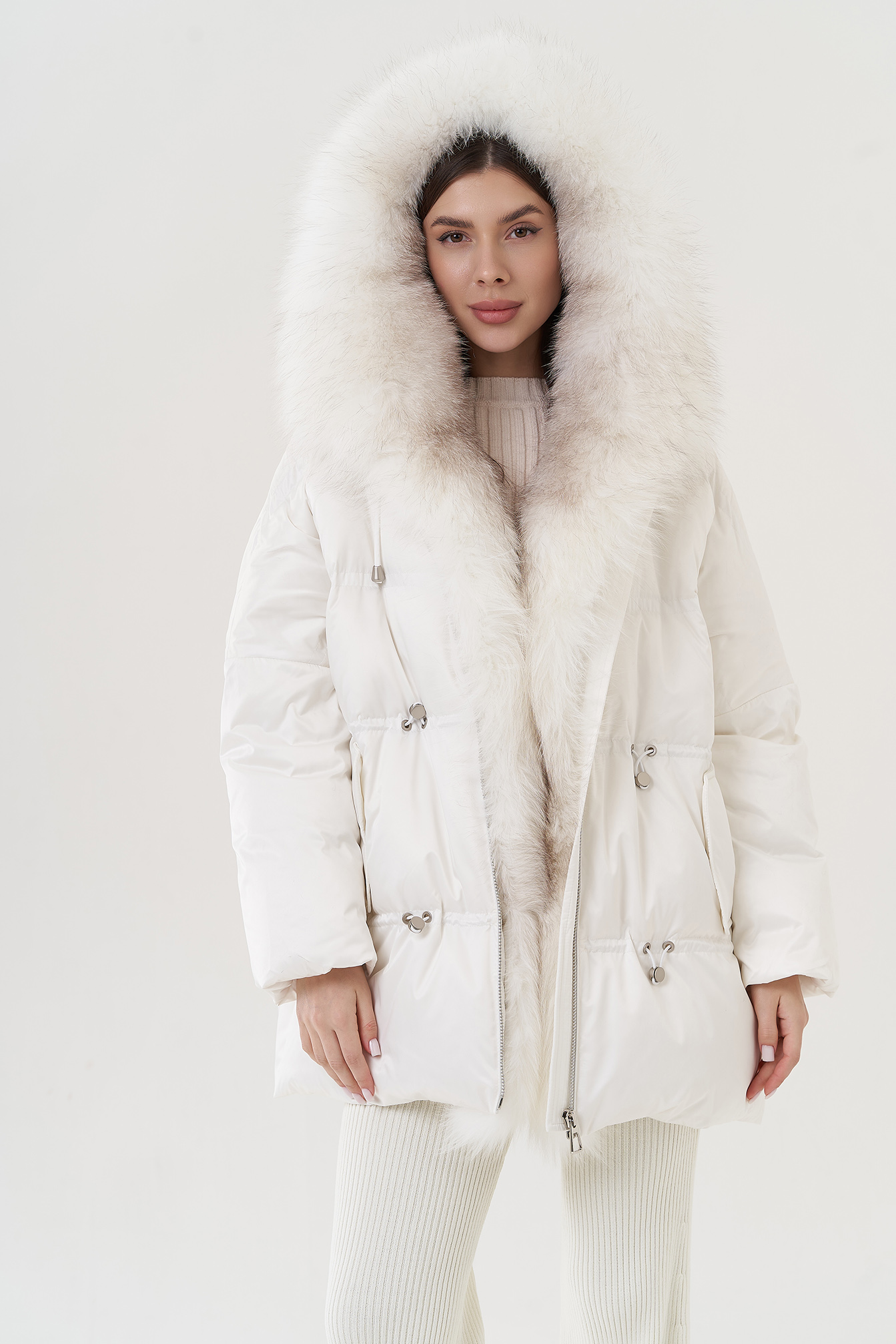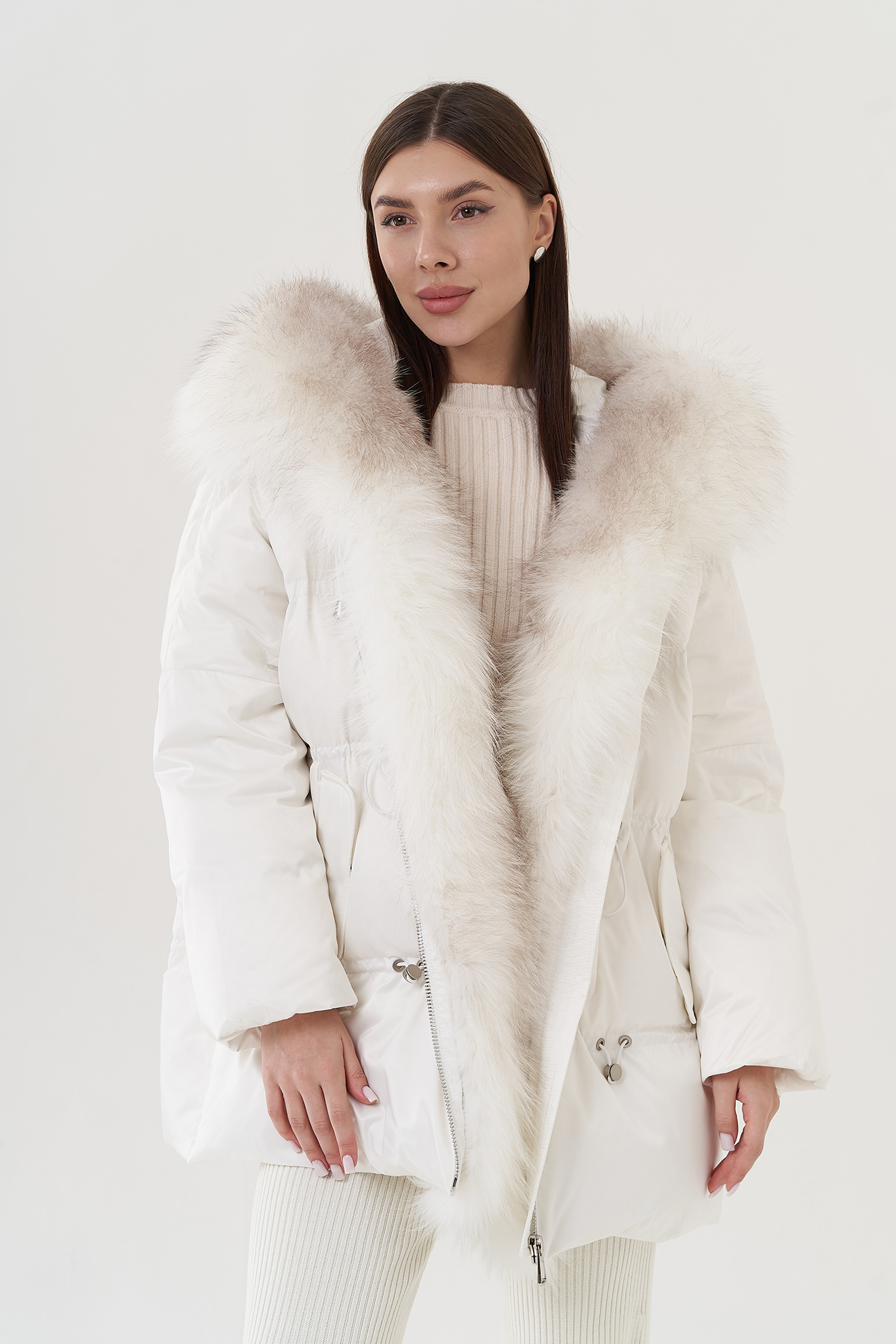 Крой воротника - капюшон, отделка лиса