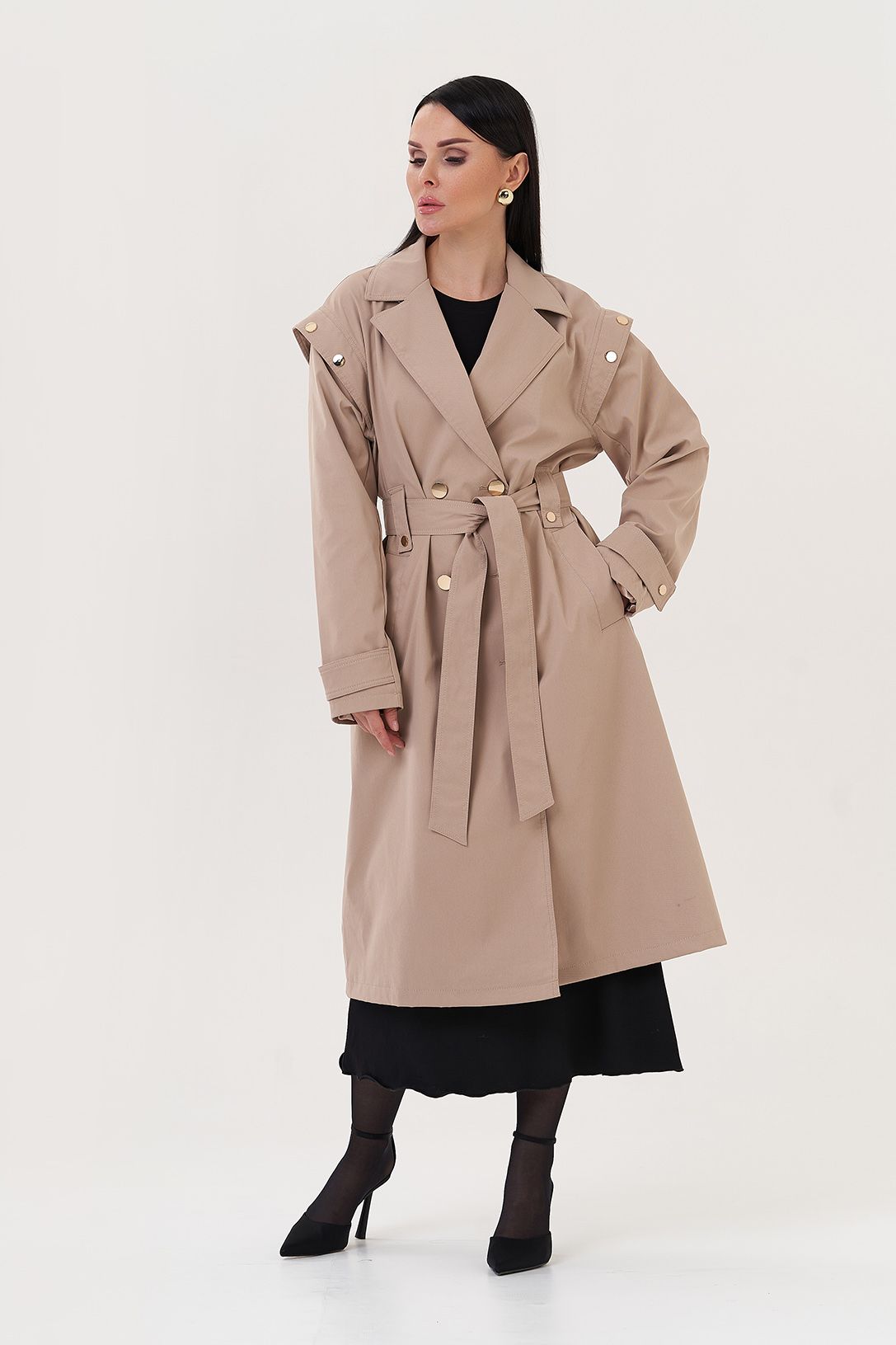Вид застежки - кнопки, пояс