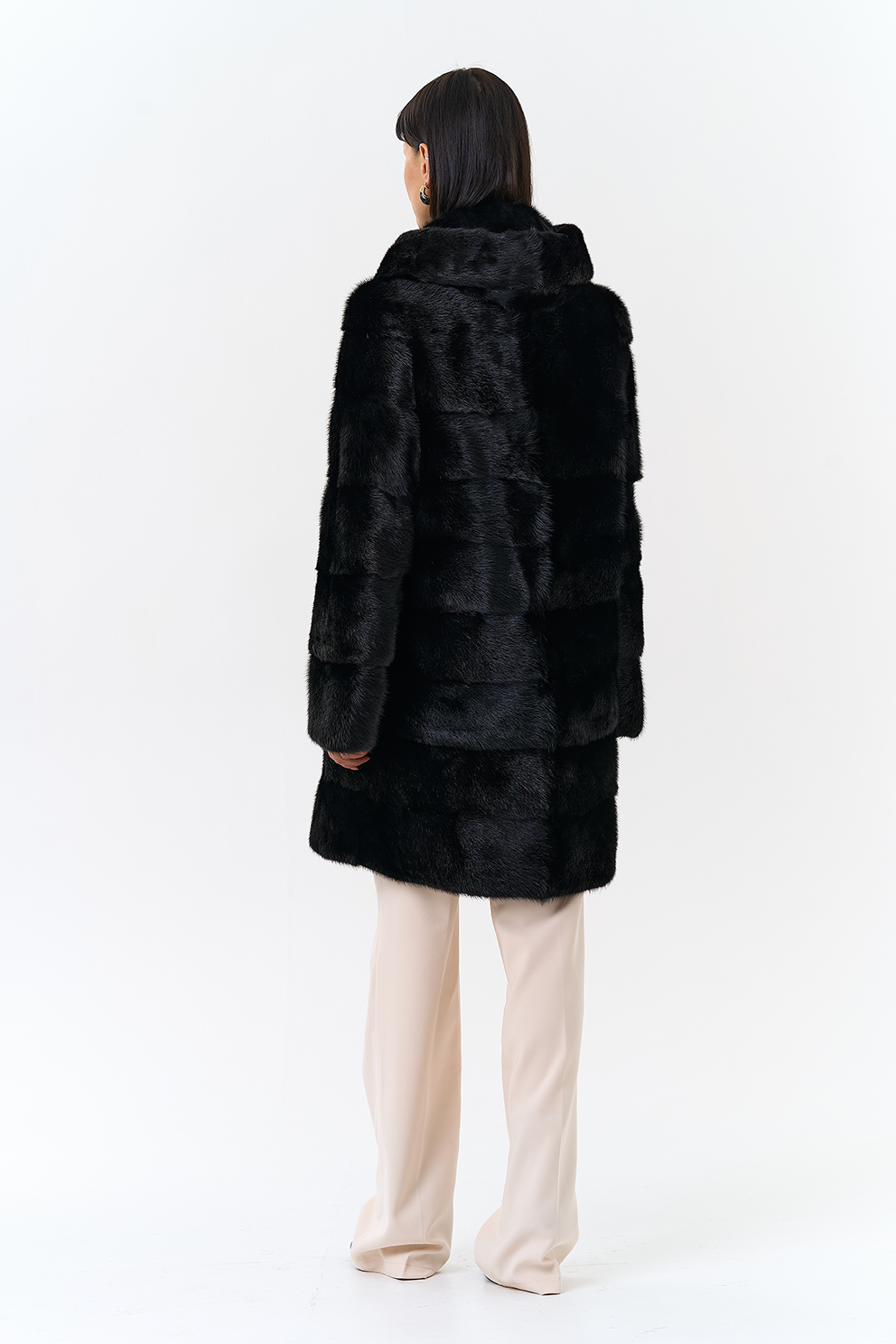 Шуба поперечной раскладки в черном цвете из меха норки.